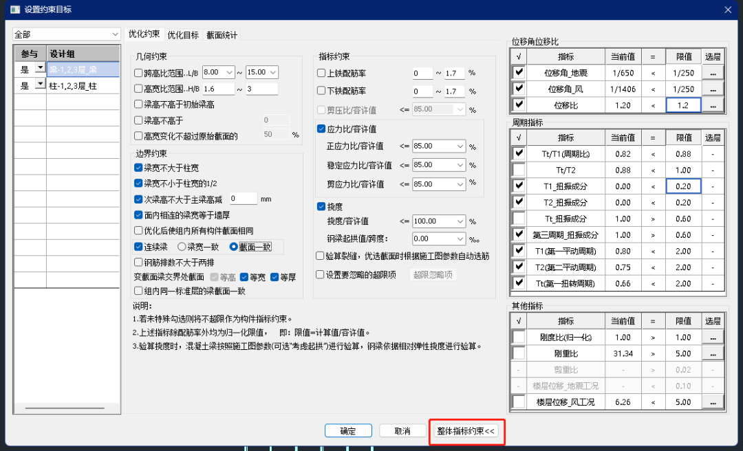 1、造价指标双控:在八度区混凝土框架项目中,仅需5次迭代即可同步消除构件超限与整体指标异常,优化后造价降低约5%~11%,且关键指标(如位移角、周期比、刚重比等)均控制在规范限值内,大幅减少返工。