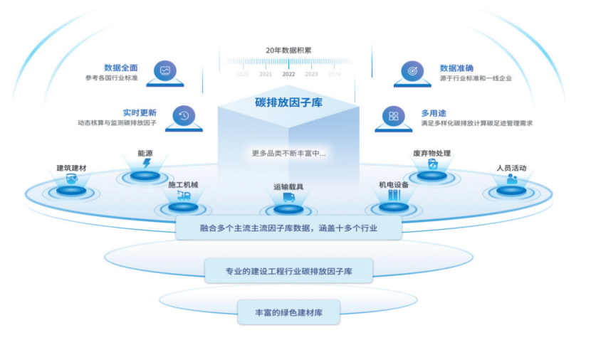 建筑碳排放计算软件 PKPM-CES 依托 20 年数据积累的专业碳排放因子库,覆盖能源、建材、施工机械等十多个品类,软件实时适配国家和各地新标准,实现方案阶段碳评估、全生命周期碳排放计算及可再生能源、绿色植被(碳汇)等减碳措施的计算。