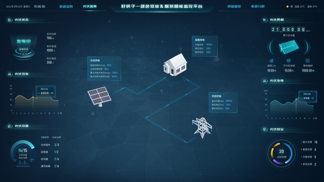 依托住建部好房子项目打造的PKPM 绿色低碳 & 智慧智能监控平台,更以全周期智慧运维能力,成为 “好房子” 长效达标的核心支撑。作为 PKPM 绿建软件体系的重要延伸,该平台深度衔接前期设计阶段的能耗模拟、碳排放计算数据,将光伏设施、地暖系统、智能家居设备互联互通,构建起 “设计达标 - 运营优化” 的闭环体系。